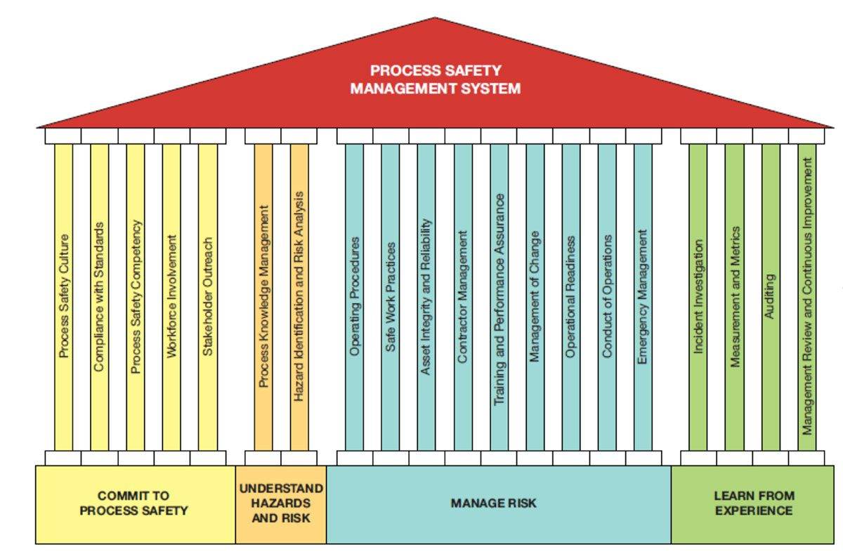 PSM includes elements such as process hazard analysis, operating procedures, mechanical integrity, management of change, employee training, and emergency planning and response.